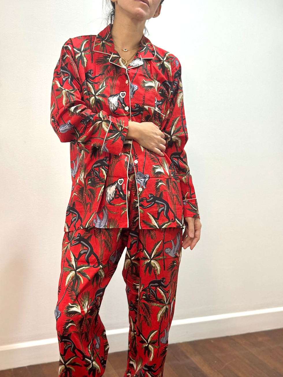 Long Pajama Set in Brick and Punch Stripe Tiger Print